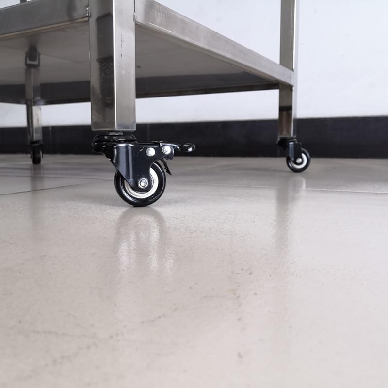 This 304 stainless steel examination table is designed with a focus on unmatched functionality. Unlike generic exam tables, our model integrates practical storage directly into its design. It comes with built-in drawers and a two-tier bottom shelf, providing ample space to organize pet care tools like thermometers, gauze, or diagnostic kits. This keeps your workspace tidy and essential supplies right within arm’s reach. The table is also fitted with high-strength polyamide universal brake wheels. This allows you to easily move the table to adapt to different care scenarios, from pet reception to trauma treatment, and then lock it firmly in place for a stable surface during exams.